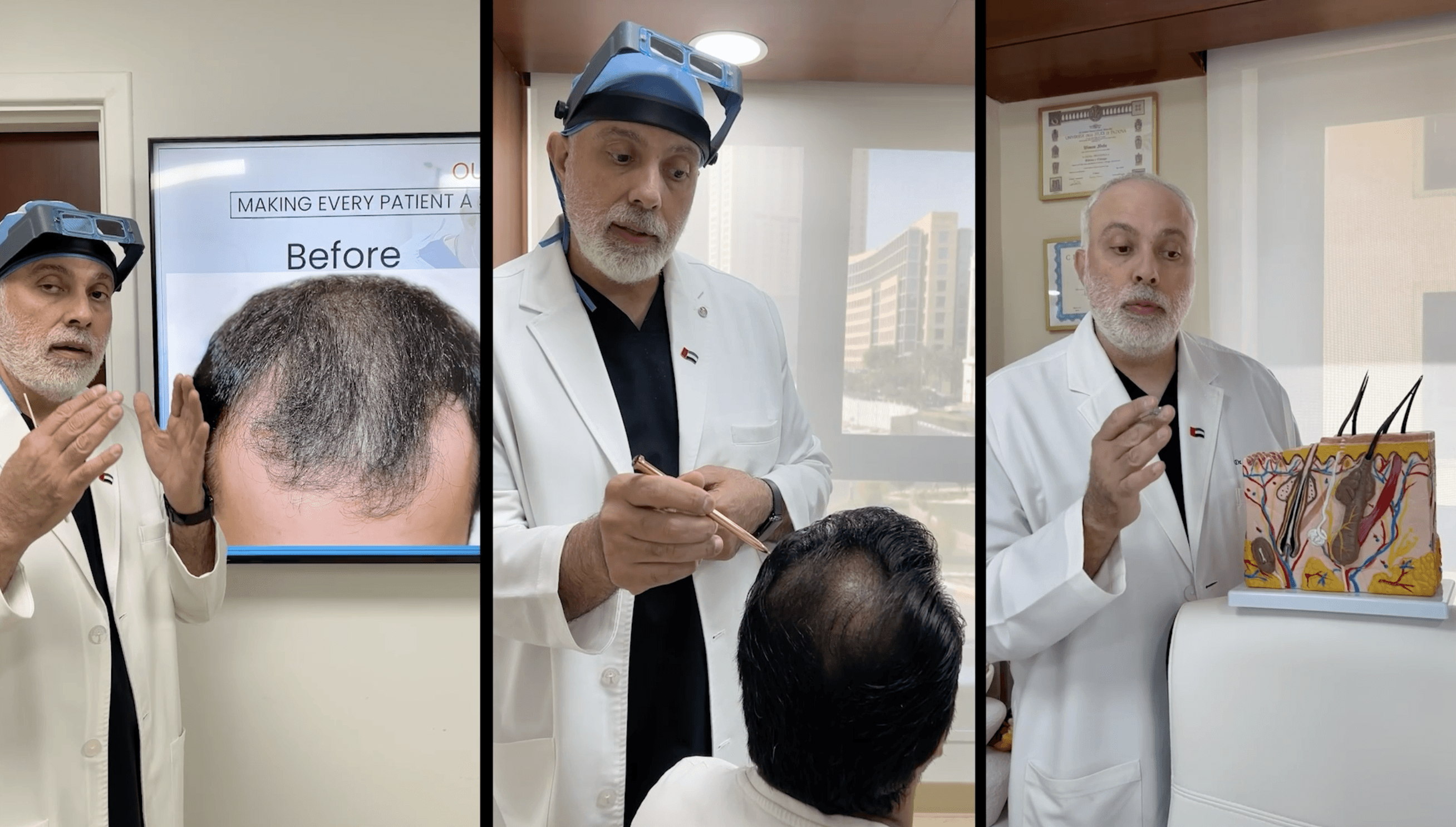 “There’s a history of balding in my family. The treatment starts professionally, by a blood test so the doctor can indicate the problem. Hair loss became less; I thought I’d get around 10/20 of the results, but I got much more!”